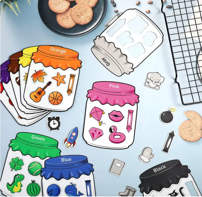 🌈 Razvijanje Veština Kroz Igru: Set sadrži 10 okvira u obliku tegli za slatkiše i 50 šarenih magneta sa motivima igračaka, hrane, školskog pribora, životinja i još mnogo toga. Deca mogu povezivati magnete sa odgovarajućim teglama iste boje, čime razvijaju sposobnost prepoznavanja boja i logičko razmišljanje. 🧠